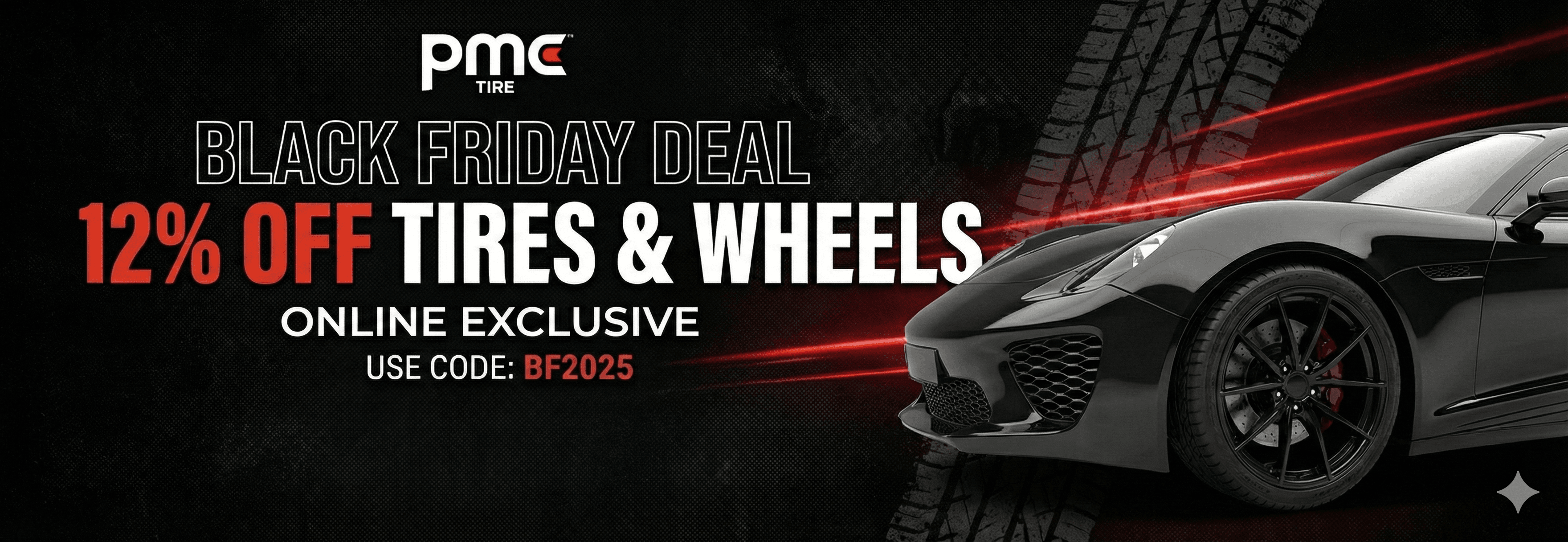 This Black Friday & Cyber Monday, PMCTire is increasing its standard 10% savings to a special 12% OFF on selected eligible brands. From November 28 to November 30 at 11:59 PM EST, enter the promo code BF2025 at checkout when your order reaches $500 or more before taxes.