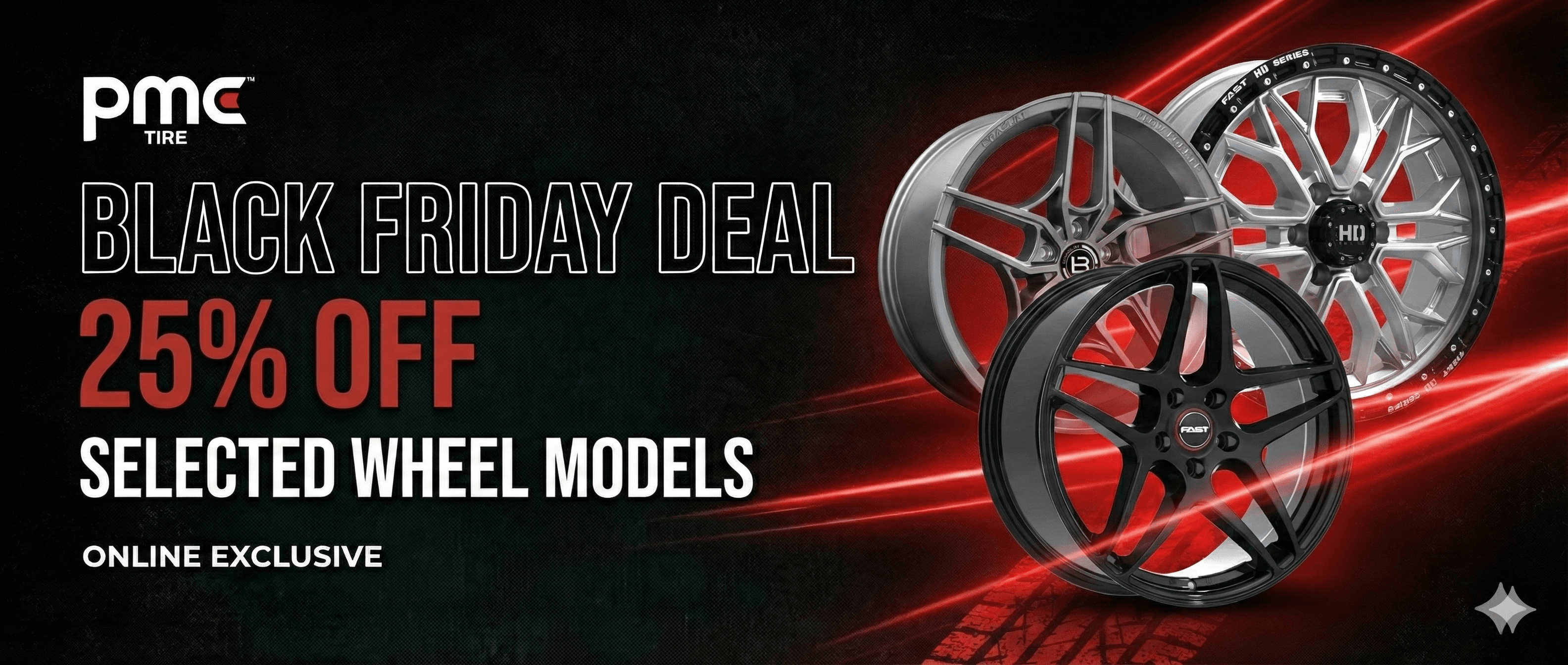 Discover 3 major promotions available for a limited time! PMCTire is proud to bring you exceptional value on wheels, tires, and trusted brands during the biggest shopping season of the year.